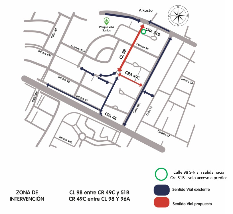 - Carrera 49C de Doble Vía: Entre las Calles 96A y 98, la Carrera 49C también pasará a ser de doble sentido, ¡facilitando el acceso a Villa Santos!