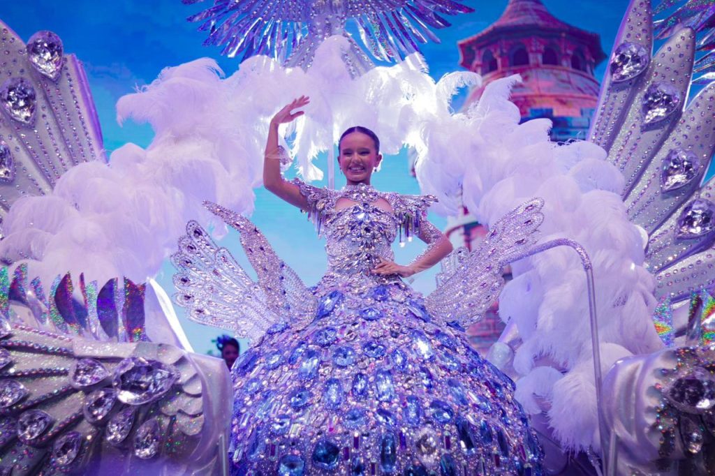 El diseño también fue protagonista. La Reina Sharon lució “Sinfonía Celestial”, una creación de Pedro Mendoza en tonos azul celeste, blanco y plata, diseñada para evocar luz y pureza. Joshua Ortiz rindió homenaje a la Danza del Garabato con un traje que simboliza la vida y la resistencia de las raíces culturales del departamento del Atlántico.