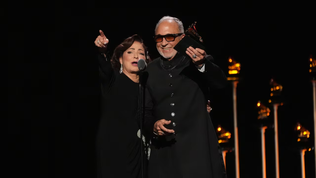 En el frente latino, la celebración fue doble. La icónica Gloria Estefan regresó a la cima al ganar Mejor Álbum Tropical Latino por Raíces, su primer disco completamente en español en casi dos décadas. A sus 68 años, la reina del pop latino demostró que su legado sigue vigente, recibiendo el premio en la Premiere Ceremony junto a su esposo Emilio Estefan.