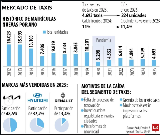 Para entender la magnitud del problema, solo hay que ver los números: en el año 2012 se vendían más de 16.000 taxis nuevos. Sin embargo, para el cierre de 2025, esa cifra bajó a solo 4.693.