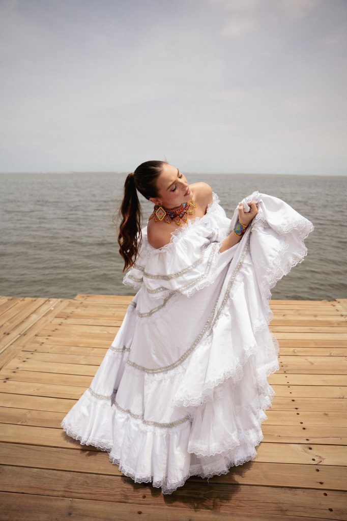 Hasta las playas de Puerto Mocho llegó la reina del Carnaval de Barranquilla, Michelle Char Fernández, para interpretar un sentido bullerengue, en el marco de la celebración del Día del Folclor.