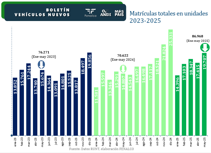 En mayo de 2025, el sector automotor colombiano celebró su mes más exitoso del año, con un impresionante registro de 19.707 vehículos nuevos. Esta cifra no solo marca un récord para el año en curso, sino que también representa un robusto crecimiento del 33,1% en comparación con mayo de 2024. Este repunte es un claro indicio de la sólida recuperación del mercado y del creciente optimismo entre los consumidores y la industria.