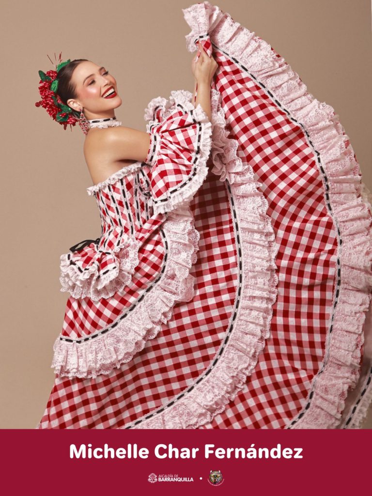 ● Michelle Char Fernández: diseñadora de Interiores y de Producto, de 23 años, ha integrado la escuela Julie de Donado e hizo parte del Ballet de Barranquilla durante una década. Fue capitana juvenil del Country Club en 2018, ha pertenecido a grupos Fuerza Negra, Kadanzá, cumbiamba La Revoltosa y la comparsa Pasión Latina.